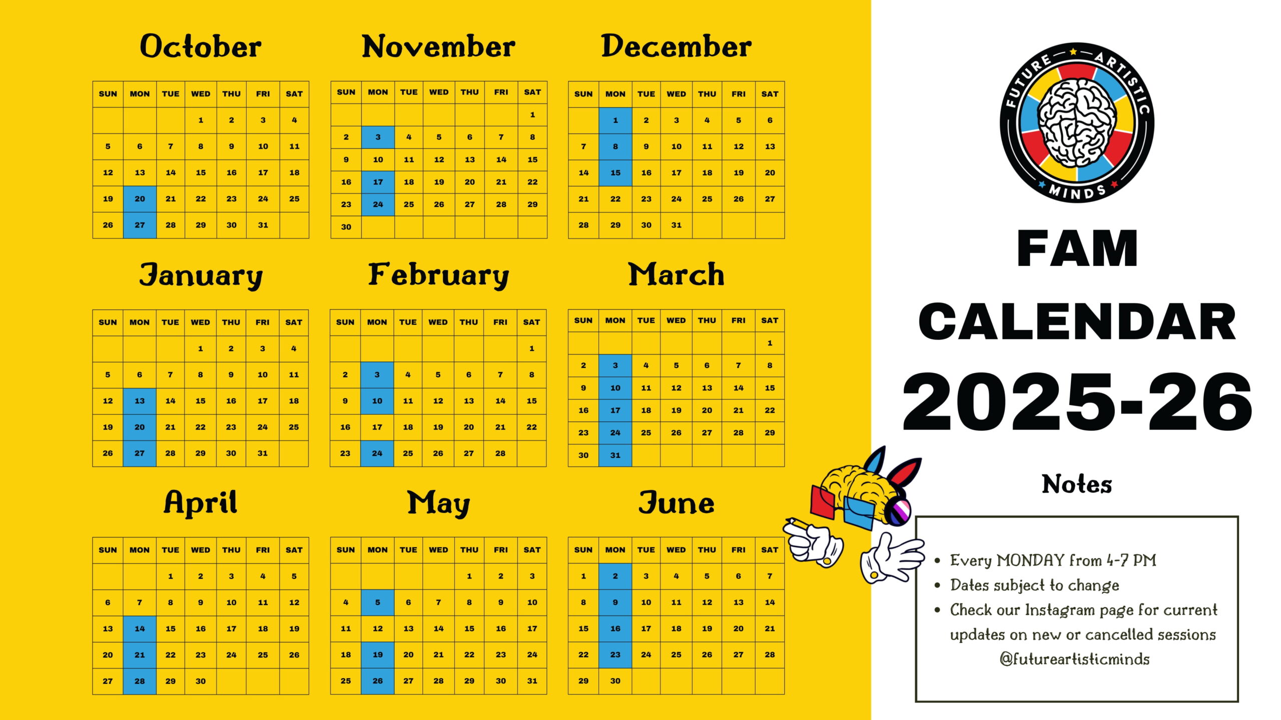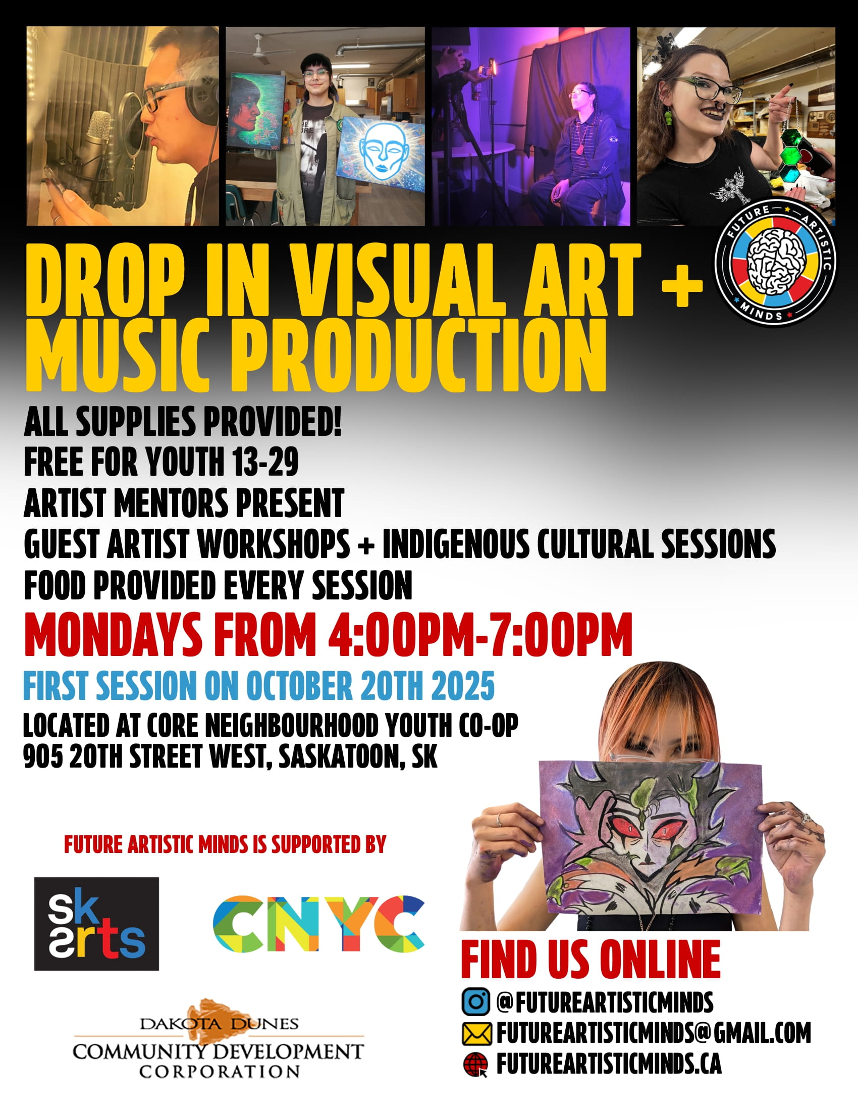 Future Artistic Minds  – Mondays 4:00pm – 7:00pm